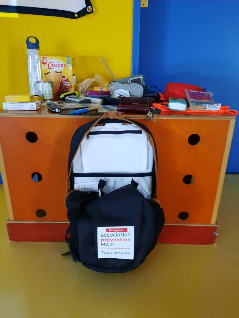 Une deuxième partie est consacrée au Kit d’urgence. Les élèves découvrent son utilité, le contenu essentiel qu’il doit comporter, et proposent leurs propres idées. Ils sont déjà sensibilisés aux phénomènes climatiques, notamment les inondations, abordés dans le programme 2026. Après un court film, un jeu de cartes leur permet d’identifier les éléments à placer dans le sac. Certaines questions reviennent souvent, comme la possibilité de préparer un kit pour un animal de compagnie. La réponse est positive, et ce point est abordé avec sérieux.
